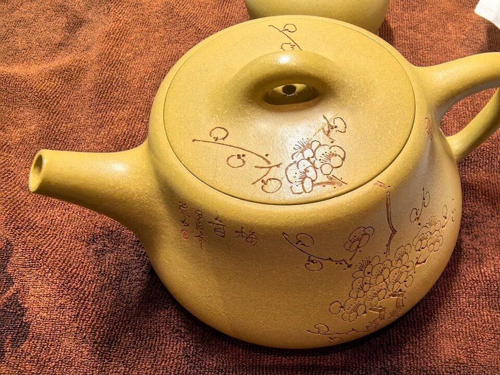 Exuding the serene essence of a zen garden, this exquisite teapot features intricate engravings of a delicate plum blossom, showcasing remarkable wenren fenggu—or literary charm. The artistry pays homage to the resilience and grace of the plum blossom under the harshness of winter, a fitting tribute that elevates each tea session to a moment of meditation and reflection.